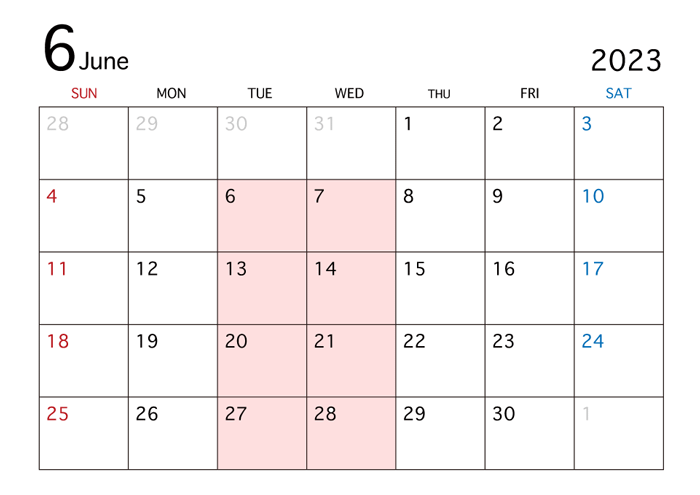 6月の営業日カレンダー